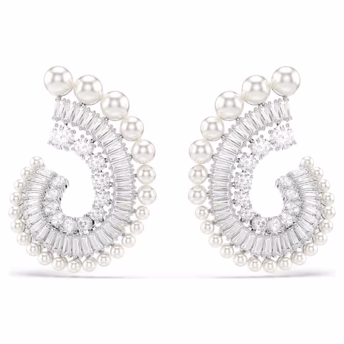 Etheria’nın savoir-faire’iyle tamamlanan bu çarpıcı iğneli küpe, tüm kıyafetlere ışıltı katmanın ultra modern bir yolunu sunuyor. Rodyum kaplama her bir parça, farklı boyutlarda yuvarlak ve baget kesim Etheria Zirkonya taşlarının oluşturduğu açık bir spiral tasarımıyla tamamlanıyor. Dış kısımda ise tasarım, ona lüks ve çekici bir dokunuş katan farklı boyutlarda sıralanmış Etheria Kristal İncilerle tamamlanıyor. Aynı kreatif ailenin diğer parçalarıyla birlikte kolayca kullanılabilen parlak ve güzel bir küpe.