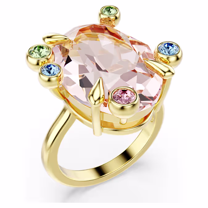 Bu enerji verici takı setiyle kristallerin bolluğuna kucak açın. Bu beklenmedik kombinasyon, her biri farklı renklerle hayat bulan büyük kristaller ve neşeli baloncuk tırnaklı yerleştirme aracılığıyla yerleştirilen küçük kristallerle süslenmiş iki adet açık bant ve bir adet kapalı yüzüğe yer veriyor. Bu ışıltılı set birlikte kullanıldığında tarzınızı ve tüm gününüzü aydınlatacak cesur bir renk ifadesine hayat verir.