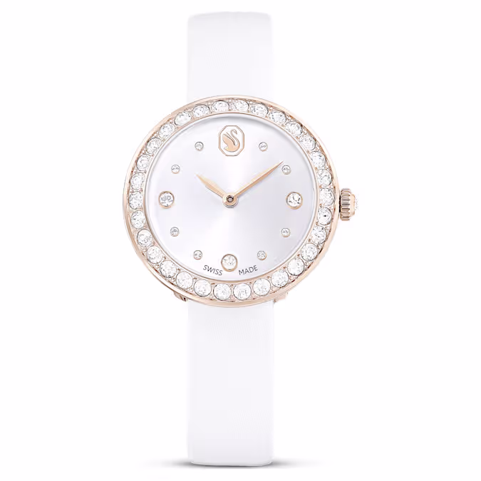 Etheria’nın efsanevi Matrix Tennis takı formunu yansıtan bu saat, kristaller aracılığıyla kendine özgü zarif bir etki bırakıyor. 30 mm paslanmaz çelik tasarım, kadranda 30 adet berrak kristalden oluşan bir pavéyle tamamlanırken güneş ışını kadran ise saat imleçleri ile daha da güçlü bir şekilde vurgulanıyor ve saat 12 yönünde bir kuğu logosuyla tamamlanıyor. Bileğinizde ise saten bir yüzey ve kolay takılıp çıkarılabilen bir sistemle tamamlanan siyah deri kordon konforlu bir kullanım sağlar. 50 metreye kadar suya dayanıklı olan bu İsviçre yapımı saatin kurma kolunda tekli bir kristal yer alıyor. Kusursuz ve eksiksiz bir görünüm için Matrix Tennis ailesindeki takılarla birlikte takın.