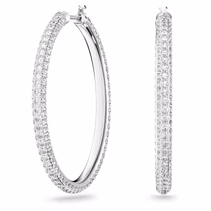 Özel Etheria ışıltısı için kristal pavé ile süslenen bu zamansız halka küpe çiftiyle Anneler Günü ve diğer özel günler için mükemmel hediyeyi bulun. Zarif rodyum kaplama tasarım, gündüzden geceye her tarz kıyafetle rahatlıkla kullanılabilir.